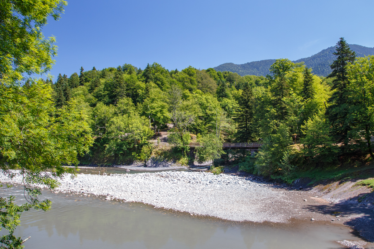Интересно также посмотреть на широкий искусственный водопад на плотине старой небольшой ГЭС, расположенной на притоке Белой – реке Молчепе. Памятник братской могиле солдат, которые защищали поселок в годы Великой Отечественной войны. Можно приходить с детьми, отдавая должное защитникам Родины. Веревочный парк кордона «Гузерипль». Пять маршрутов, спрятанных среди пихтовой рощи. А самый интересный маршрут — полоса препятствий длиной 537 метров, да еще с двумя перелетами через горную речку Малчепа.