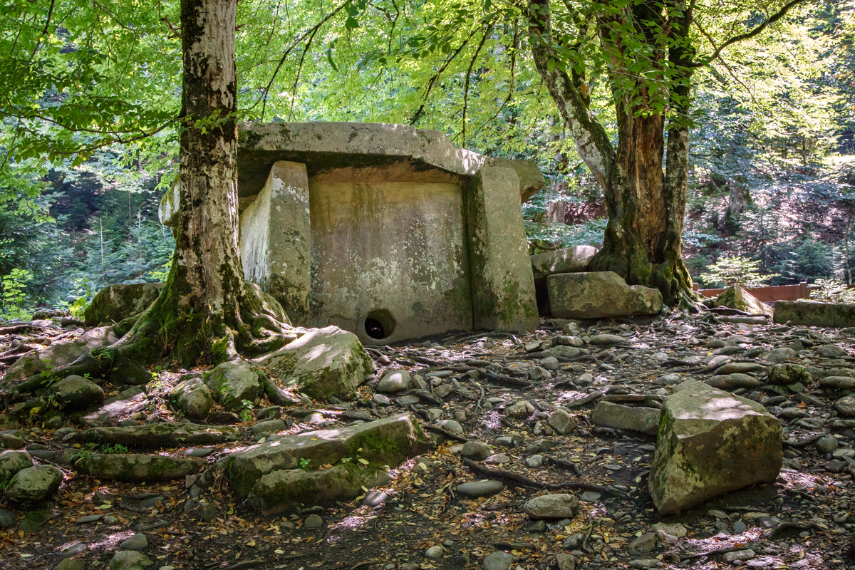 Остатки разрушенных дольменов расположены на левом берегу реки Белой на поляне туристских слетов. Большой Гузерипльский дольмен находится в Кавказском заповеднике. Датировка сооружения определяется концом 1-й половины 2-го тысячелетия до нашей эры. Музей природы Кавказского заповедника.